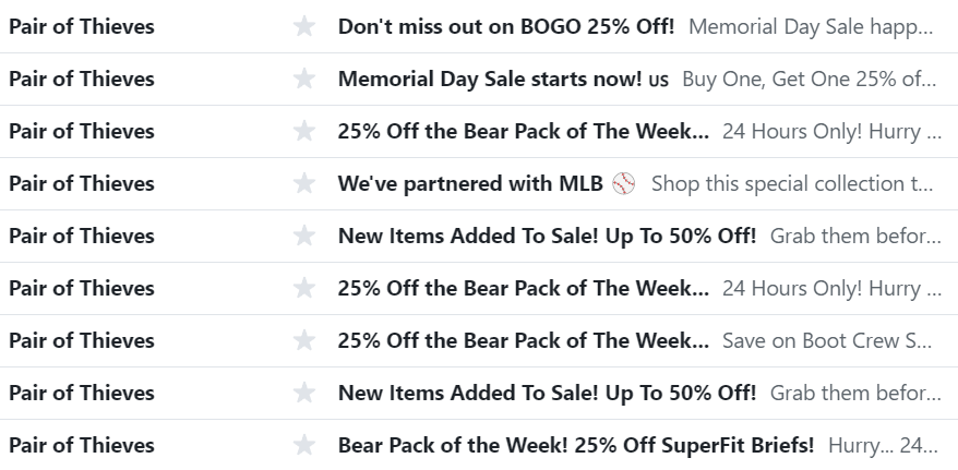 They use discounts as their main strategy to persuade customers to buy. But what happens when your customer’s whole inbox looks like the picture above? The inevitable: they stop paying attention to your emails.