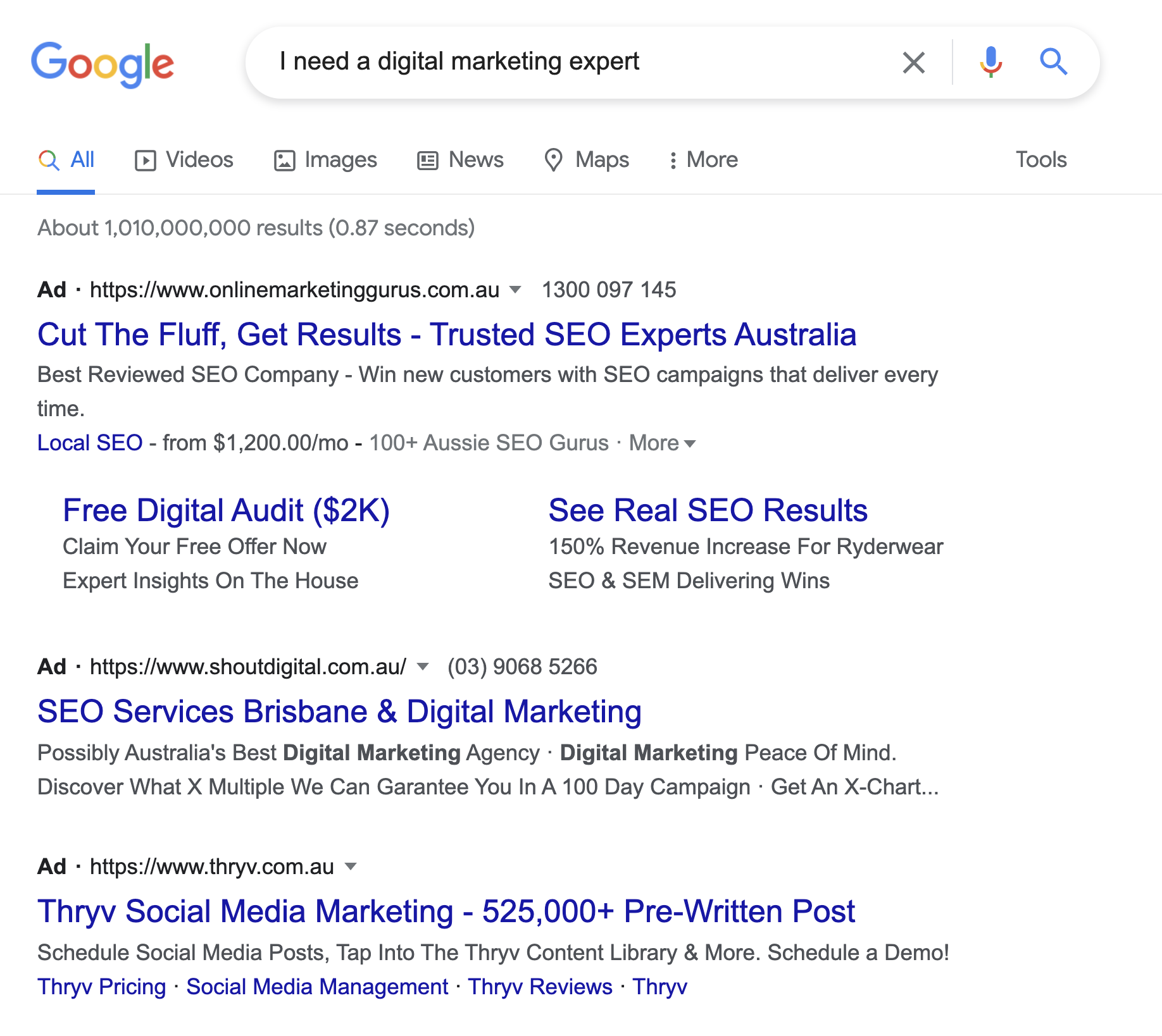 They are likely to turn to Google multiple times throughout that fragmented journey, and if your business shows up for multiple queries in multiple sections, you are more likely to win that customer: