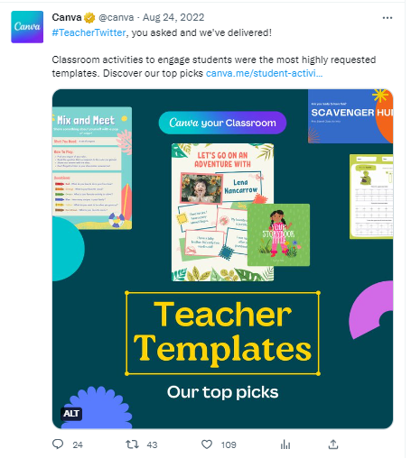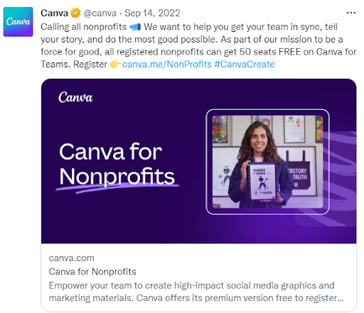 For instance, Canva creates tailored messages for each of its target groups. This is a post for nonprofits.