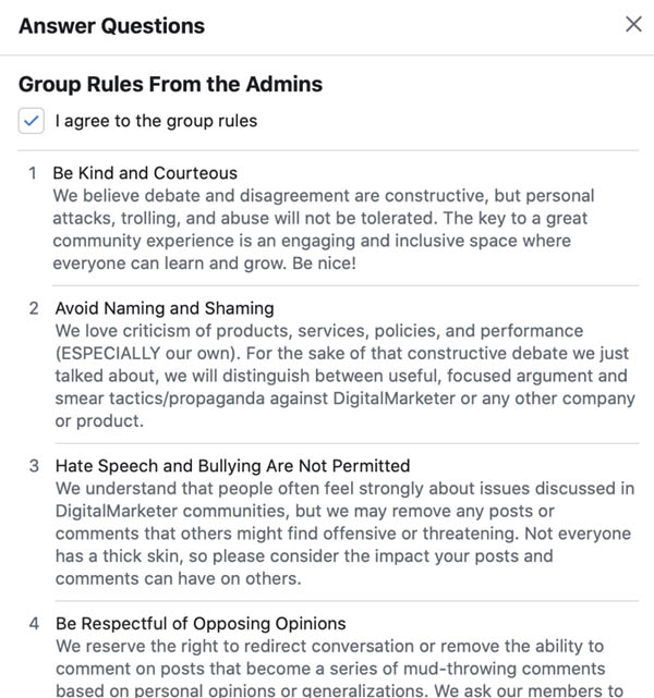 Here’s an example of what our guidelines look like for the DigitalMarketer Engage Group: