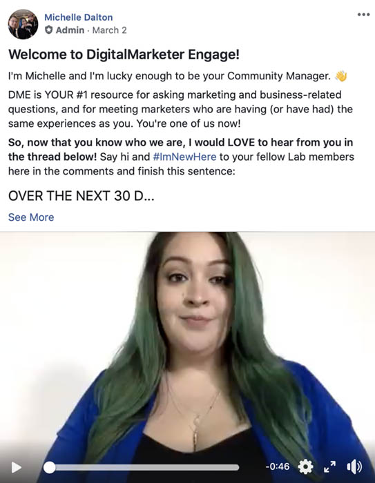 Here’s an example of our Community Manager Michelle Dalton absolutely nailing the DigitalMarketer brand voice: