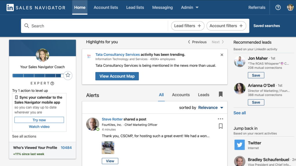 If you’re targeting B2B companies you MUST leverage Sales Navigator. This is the best platform to find and build relationships with your dream prospects and Sales Navigator helps you find those targeted connections you are looking for.