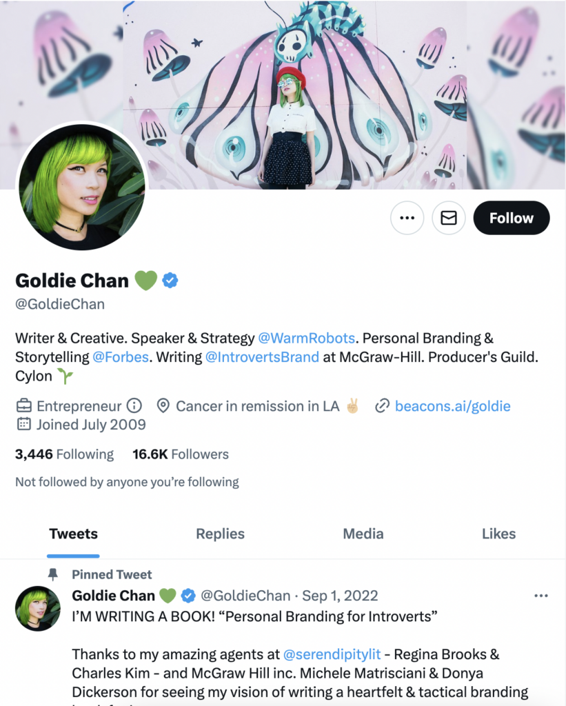 Goldie Chan is a social media strategy leader, author, and personal branding expert with over 10 years of experience working for major tech and entertainment companies. She is also a LinkedIn Top Voice for social media with over 8 million content views and has been featured on various publications.